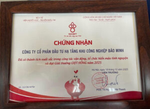 Công ty Cổ phần Đầu tư Hạ tầng Khu Công nghiệp Bảo Minh vừa vinh dự được Viện Huyết học – Truyền máu Trung ương (Bộ Y tế) trao Giải thưởng “Giọt hồng” năm 2025. Đây là phần thưởng cao quý nhằm ghi nhận những đóng góp nổi bật của doanh nghiệp trong công tác vận động, tổ chức và lan tỏa phong trào hiến máu tình nguyện.